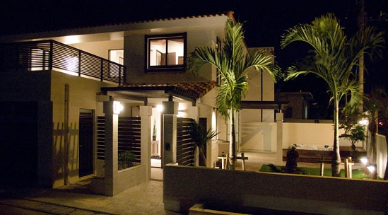 恩納村のダイビングスポットに近い場所に建つリゾート生活を楽しむことをコンセプトとした建売住宅シリーズの1つです。屋根はスペイン瓦葺きとし、全体の色彩もアイボリーとダークブラウンでまとめ、高級感のある南国リゾート空間としてデザインしました。
