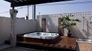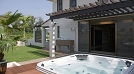 間取としては、1階にリビング・ダイニング・キッチンを広々とした一体空間として配し、2階に寝室となる個室群や浴室を配置して、来客をおもてなしするためのパブリック空間と、ゆっくりと休むためのプライベート空間を階で分けています。また、庭にはヤシなどの南洋植物を植え、その一角にはジャグジーを設け、1階のリビングとつながり、室内外が一体となったくつろぎのリゾート空間を創り出しています。